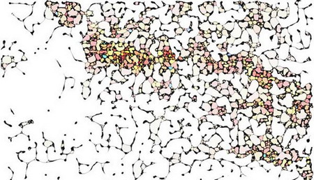 Golan Levin的《Self-Adherence》生产出的图像是从一个回馈过程所创造的,在此过程中,上千个细小的元素彼此与邻近的其他小元素互相吸引,这些元素起初是根据一个流畅多样的杂讯场域,以不规律的密度编排在画布的表面上。经过几百次的互动,这些元素变成像是一道道呈现表面张力的油性表面,产生独特的视觉效果。Casey Reas的软体艺术作品,电脑程式所运算所生成影像的即时投影。几合造型缓缓变化与流动,像是群聚的电脑生命的群聚与共鸣。本展也展出了他所创作的最新系列「CENTURY」,Casey Reas撷取了一百年前现代美术中的重要作品的元素,如蒙德里安作品,再透过电脑程式的介入与重新运算,产生全新的动态影象。