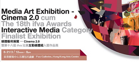 ifva今年邀请了著名日本新媒体艺术家真锅大度来港,展出作品。真锅大度是世界各地艺术节的常客,2008年已曾来港为第十三届ifva节带来神乎奇技的声影演出,令观众留下深刻印象。这次,他将会继续使出疯狂怪招,不但大玩激光投影,更会带来全新版本的脸部追踪技术,把艺廊转型为一部光影面书。万勿错过! 详情>>>