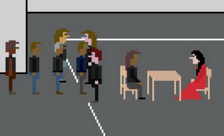 以哥本哈根为基地的游戏创造者Pippin Barr将玛丽娜·阿布拉莫维奇(Marina Abramovic)在MoMA举办的回顾展“The Artist is Present”转变成了以浏览器为基础的电脑游戏。在这个游戏中,玩家可以控制自己8比特的小型化身,徜徉在虚拟的MoMA空间中。