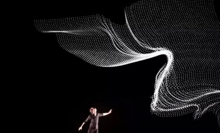 《Le Mouvement de l’Air》完全将人体的肢体艺术与计算机传感技术、投影技术完美融合。人四肢的律动在开阔的变幻光影下虽显渺小,但是人体与科技的互动与碰撞却给了观众一种震撼的眩晕感。