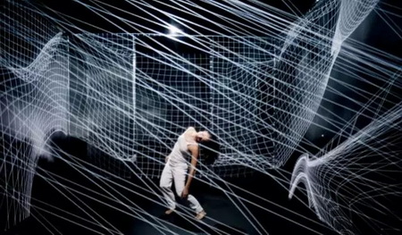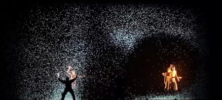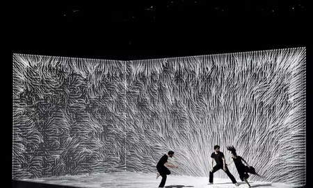 三个舞者通过悬挂装置进入由生成和动态实时投影图像的身临其境的环境飞行。杂技舞蹈和数字概括了肢体语言与时间,空间的信息,是一个幻想的运动和一个新的形象。