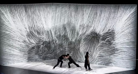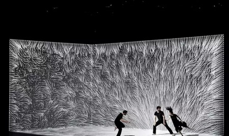 Adrien M & Claire B的舞蹈完全将人体的肢体艺术与计算机传感技术、投影技术完美融合。人四肢的律动在开阔的变幻光影下虽显渺小,但是人体与科技的互动与碰撞却给了观众一种震撼的眩晕感。