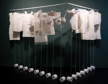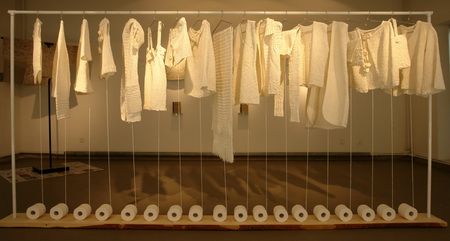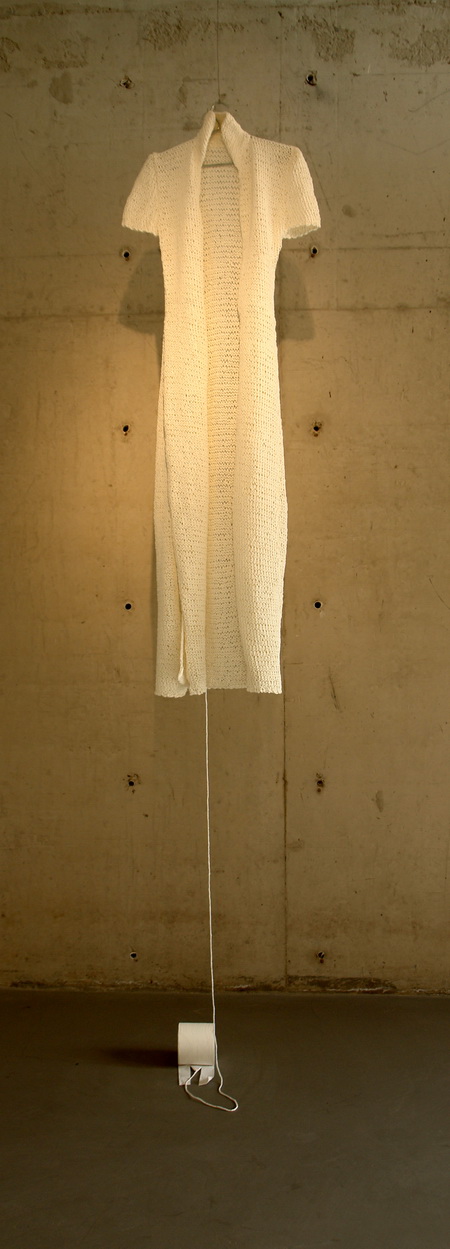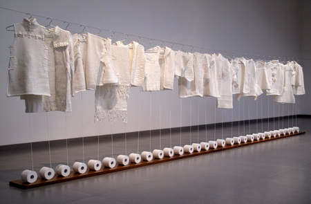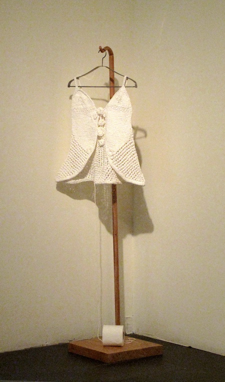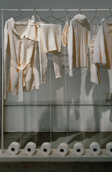 手织手纸-旗袍,卫生纸搓线及编织技术,130x45cm,2009
