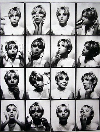 安迪·沃霍尔拍摄的一大类照片叫做PhotoBoothStrip,什么意思呢?就是在一个小简易的摄影棚里,在简易的白背景前给一个人拍摄不同表情,不同姿势一长串照片,并且把所有照片都展示出来。摄影大师布勒松的理念是拍照要拍决定性瞬间,然而安迪沃霍尔德理念却认为并没有什么决定性瞬间,人千变万化的表情、瞬间都很有意思。在安迪沃霍尔的PhotoBoothStrip中,许多张照片构成一个人的真实生动的存在。