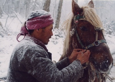 之前老于寄给我《木帮》时,我看后曾写过一段话作为观后语:“《木帮》,是关于东北黑龙江偏远地带深山里最后一批伐木人的纪录片。影片记录过程简单、直接,所谓的情节或线索都被刻意模糊化,而自然环境的恶劣,和人的艰苦求存,被近乎单调的、但却接近完美的画面一再重复再现。结尾处,木材被做成棺材却最终埋葬了伐木人,“折返零点”,由此影片构成了最具深层意义上的社会学描写。”