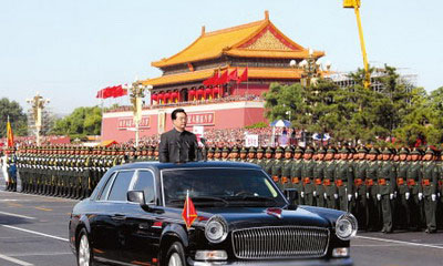 2009年10月1日,胡锦涛乘最新红旗阅兵车检阅受阅部队