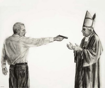 展出的9副作品为黑白炭素画描绘了刺杀首脑的场景,Vicente化身画作主角——刺杀者,包括英国女王伊丽莎白二世、美国前总统小布什、罗马天主教教皇本笃十六世、巴西总统卢拉在内的9位首脑都成为了Vicente的阶下囚。在Vicente看来,社会上处处充满着不公平,而这个系列里描绘的人,从巴西的大小官员到其他国家的领导人,“他们曾经或现在仍然有在全世界范围内改变社会的权利,但是他们不但没有做任何对社会有益的事情,还窃取了巨额的公款。”
