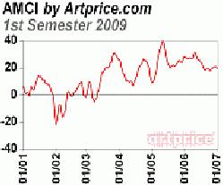 自从Artprice网站2008 年初创建艺术市场信心指数以来,这套系统已经逐渐成为全球艺术市场人士对于艺术市场走势判断的一个工具。最近,Artprice 网站便对 2009 年上半年艺术市场信心指数的变化状况进行了简单的梳理。