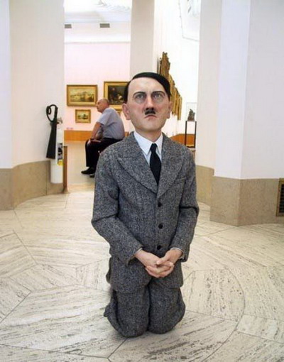一些人认为毛里乔奥·卡特兰的作品像是笑话,但他的作品更像是政治性的讽刺画。他的每一件作品都引用一个标志性的挑衅形象并结合以偏执的黑色幽默一遭遇陨石之灾的教皇;跪着祈祷的希特勒;头埋在墙中的一匹马。