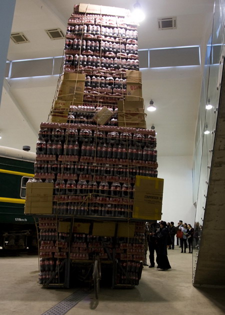 王度: 我没有把媒体当成一个主题。我的工作来自于对我们生存的时间、环境的意识。全面媒体化实际上是对我们的生存时空的定义,工作自然而然会跟这样的大环境发生关系,但这不等于我就非要做和媒体有直接关系的东西。我的工作方式有很多,关键看你有怎样的想法和怎样的表达。有未做到位需要延续做一阵的东西,也有去年在唐人“轨迹”展览中展出的《可乐》这种我说比较“应景”的东西。这个东西是从街上“捡”来的,比较调侃,这种景观只有在很落后的国家才能看到。本身就很有表现力,我只是将它扩张了,强调了它的“作品感”。我们经常在生活中看到一些东西已然是一个非常有趣的“作品”,但这种东西不是真的就是什么了,弄不好就会有“现成品”之嫌。我做这个东西是因为超载的可乐跟板车的关系表露无疑。
