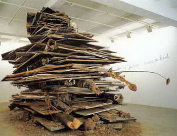 在装置的发展过程中,艺术家选用材料的范围呈现出不断扩展的态势,很多见所未见的材料介入装置,使其发展为一个庞大的艺术形态。如果按材料的类型,还可以对装置进一步划分。