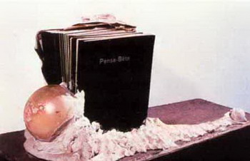 譬如艺术家从城市文明抛弃的废中挑选出来,并按照自己的意愿加以重组的作品被称之为废品雕塑。装置艺术的先驱斯勒(Fredrick Kiesler)在他生命尽头所作的《最后的审判》中暗示教堂家具的物体以及彩色壁板是通过戏剧化的灯光来联系起来的。就如戏剧舞台美术中的灯光是表现的重要组成部分一样,这件作品也只有在光线的作用下才透出阴沉而恐怖的教堂气氛,我们把他的作品又特称为环境艺术。