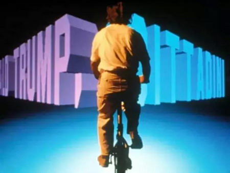 国际新媒体艺术的领军人物邵志飞1989年的作品《可读的城市》,观众可以“骑车”进入一个电脑程序生成的3D字母组成的城市。