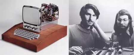 苹果电脑一代(左图)如今看起来像是一个当代艺术装置(右图为当年的乔布斯和沃兹尼亚克)