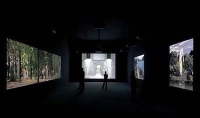 美国影像艺术家比尔·维奥拉(Bill Viola)作品《白日出发》(2002年),由五组投射到不同墙面的录像组成。