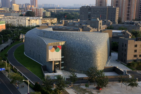新美术馆于2008年3月竣工,位于中央美院校园内,是中国最具现代化标准的美术展览馆之一。美术馆建筑呈微微扭转的三维曲面体,天然岩板幕墙,配以最现代性的类雕塑建筑,展现中央美术学院内敛低调的特质,同时也与校园内吴良镛先生设计的深灰色彩院落式布局的建筑物充分融合及协调。美术馆总面积为14777平方米,地上四层,地下二层,局部地下一层。展览及陈列面积共4150平方米,其中二层为固定陈列展,展示古代书画和美院资深教授的赠画藏品,以及当今美院在籍教授的作品;企划展厅设置在三层及四层,均为天光围幕的敞开式现代化展厅。三层11米高的展厅可为当代艺术展览提供充分的展示空间。美术馆藏品库房位于地下二层,1120平方米,采用国际最新信息技术和数字化管理,在软硬件方面均可达到国际水准。公共服务设施主要位于一层,其中报告厅可容纳380人,为学术研讨、专题讲座及新闻发布会等提供了便利场所。其他公共服务设施还有服务台、咖啡厅、书店等。