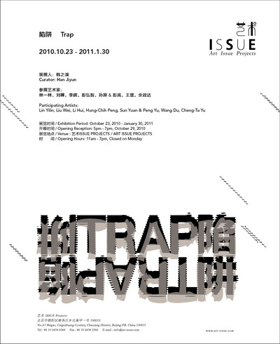 The participating artists, Wang Du, Lin Yilin, Sun Yuan & Peng Yu, Hung-Chih Peng, Liu Wei, Li Hui, and Cheng-Ta Yu, each use their own methods to comment upon the trap: directly displaying the unavoidability of failing into it; using irony and jesting behavior dispel it; exploring the cultural language which produces it; or manufacturing visual splendor and beauty to numb the viewer’s mind. Whether they are criticizing, sneering, joking, playing or banishing, not one goes without alerting us: we are all personally on the brink of one trap or another, and could it be that we’ve already fallen in but the majority of us are entirely unaware of it?