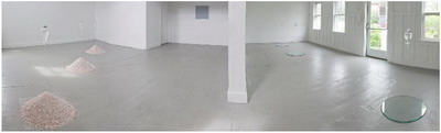 The exhibition title, Why Do Trees Grow Till the End?, takes its inspiration from the notion that perennial life forms continue to grow unless terminated by external factors. In Black Cloud a kinetic installation by Roy Ng, a plastic bag warps in a placid rhythm as if caught by a breeze in slow motion. In Untitled (snow) and Untitled (4mm snow) , Vivian Poon takes the cotton tree as metaphor for snow in her native south China and paints passive scenes of the plant viewed through net curtains. Salt Water by Wun Ting Wendy Tai is a two part apothecary-esque installation. With suspended glass funnels, the first part extracts salt by evaporating brine collected along Cape Cod, US and the second tardily dissolves mounds of salt rock with small beads of water.