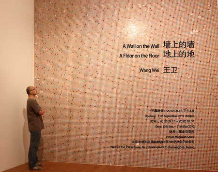 Magician Space is pleased to present artist Wang Wei's solo exhibition "A Wall on the Wall, A Floor on the Floor", which will open on September 13th, 2012 and run through October 31st, 2012. The work exhibited duplicates wall and floor surfaces from different places in reality. In the exhibition space they pretend to be two decorative surfaces, and in a visually manic, illusive way presenting a kind of “everything is but at the same time is not” state of doubt. The clues and thoughts that are underneath the presentation of the work construct an imaginary space that is seemingly powerful, but also problematic, ridiculous and awkward. Those that have been added and those that have been left behind have together become reality’s “decoration”.