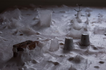梁绍基《雪藏》,2014,装置:丝,金属,砖,塑料,生活用品等