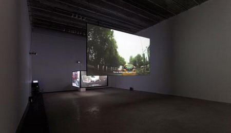 在与展览同名的3屏录像《大比喻家》(2014)中,郭鸿蔚背对镜头,一望空阔,嘴巴如连珠炮,欲止不得,踏下油门、比喻连篇、荒腔走板,然后停车抽烟,郭鸿蔚似乎正在享受着某种燃烧般的快感。录像中有一段郭鸿蔚被警察随机拦下来查验驾照身份证的镜头,郭鸿蔚腼腆而突兀地声称自己在思考人生,“人生好像一条路,警察叔叔来保护”。当然,这里是艺术家事先安排妥当的演员,警察叔叔是不会轻易放过满嘴奇葩伪饰的驾驶者的,哪怕说的是有深意和诚意的谎言。郭鸿蔚还安排了一位富二代朋友驾驶保时捷超车的场景,这种场景在平时能有效唤起尊敬与嫉妒,而在录像里却如梦境的边缘、释然之后的和蔼。