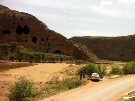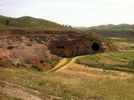今年9月我赶到陕西志丹县永宁山崖前,看到的三之,满身尘土,状似民工,正带领着一群工人埋头打洞。工程已经持续了月余,洞尚未完成,因三之要求深打,一直深到把外面的光线全吸进去才算完。已经有朋友劝他:大概粗打个洞就成,何必费力深挖,劳命伤财;还有的劝他:干脆在山崖上涂个黑圈圈就成,省事省钱;更有人劝他:好好儿的打什么洞,乖乖地画你的画去罢。