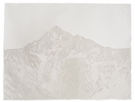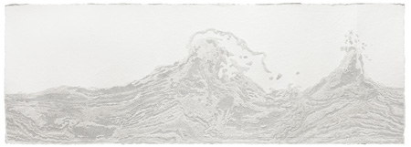付小桐用针毁坏了纸面的完整性,但也由此赋予了它一种新的能量。当纸面受到从不同方向照射而来的光时,它透过针孔呈现出特殊的光影效果。走近观看,由有限、不同层次的白色调构成了抽象的图案,犹如繁复编织的挂毯。而从远观,这些交错纹理的图案似乎是受到了地形变化的启发,犹如山峦直冲云霄或是海浪滔天。