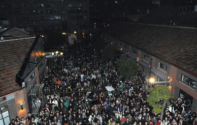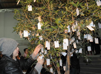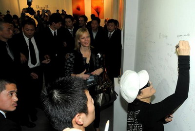 开幕酒会上随着洋子亲身演绎行为艺术《ONOCHORD》,按照国际声光代码的频率,用手电在可当代艺术中心上空闪烁出“I Love You”信号。广场上聚集的近千名观众也按动手中的ONOCHORD小手电,闪烁着“I Love You”的信号,此起彼伏,与洋子的闪光相呼应。这闪光的爱的信号射向天际,穿过无尽的岁月,越过广袤的大地,传向一切现在的和过去的亲人,向他们表达出关爱和挂念!接着洋子又来到展厅,在墙上写下了展览主题《飞》以及对上海的祝福。在洋子的鼓励下,现场观众也拿起笔,在可当代艺术中心展厅的墙上写下爱的只言片语,祝福自己的妻子,丈夫,孩子,其他的亲人和朋友,祝福世界和平,祝福全人类… 顷刻之间,爱的高潮迭起,洋溢在艺术中心的每个角落,在十一月中旬申城风雨交加的晚上,为人们的心中带去无限暖意。